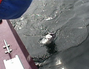 Release sequences of trout fom a boat.